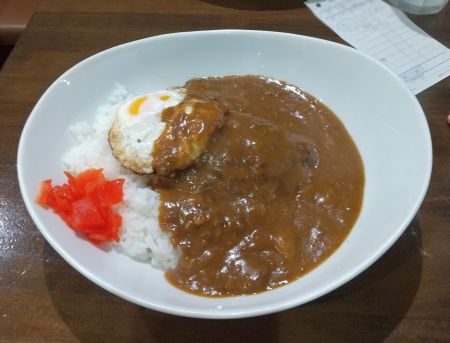 この日の昼食は、秋葉原の「牛舎」でハンバーグカレー卵トッピングを食べました。