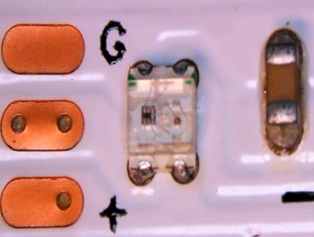 確かに、素子は4本足で左側にチップが、右側に LED が封入されているようです。
