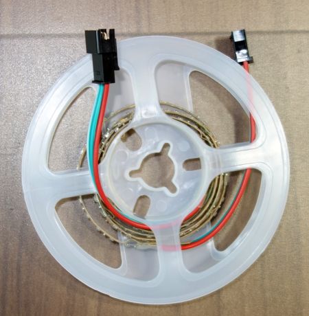 ラジオペンチさんの作例では 60個/m の LED テープを使用していますが、デロリアンに組み込むには LED の間隔が短いほうがうれしいので、試しに 160個/1m の LED の物を購入しました。(幅はラジオペンチさんと同じで一番狭い 5 mm です。)