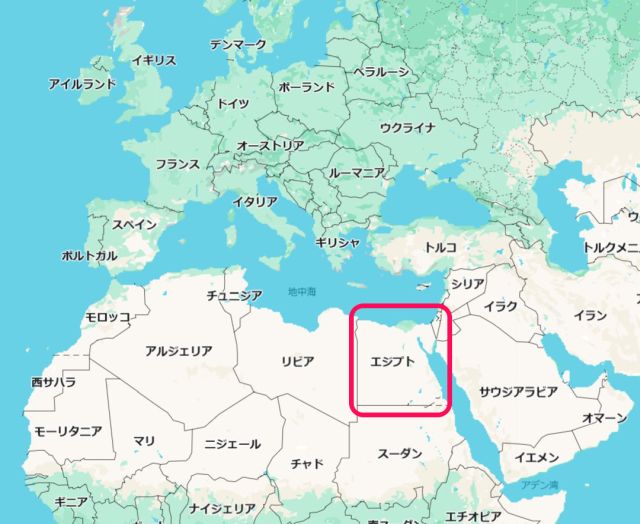 海外の国はアメリカとイギリスぐらいしか場所が良くわからないので、エジプトについて調べておきます。