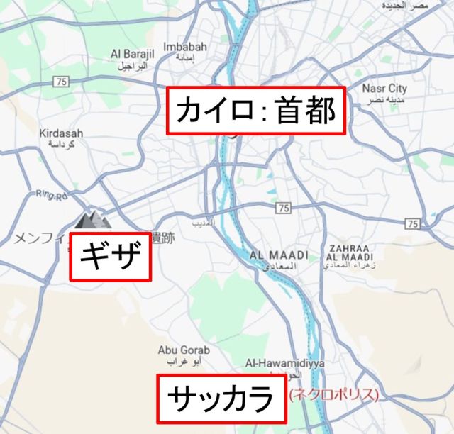 カイロは現在のエジプトの首都ですが、3大ピラミッドは近郊の「ギザ」にあります。