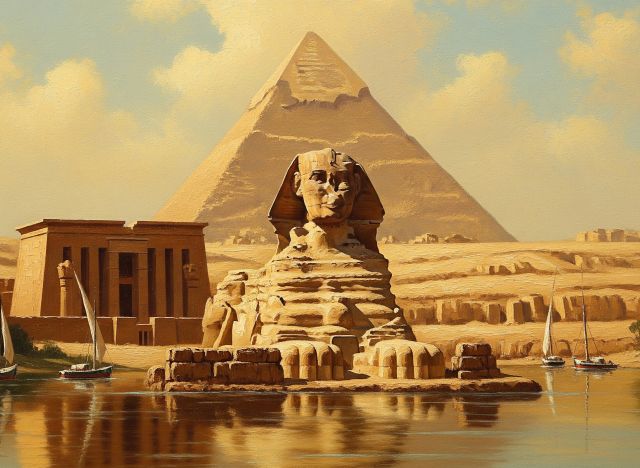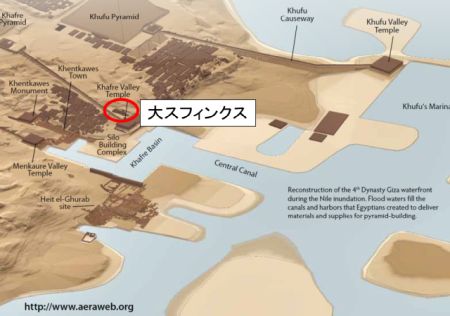 大スフィンクスの建設位置がナイル川(支流)のすぐそばで毎年の氾濫時には水をかぶっていたという説もあります。
