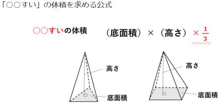 (下図は、家庭教師のトライ 中1数学「三角すい・四角すいの体積の求め方がサクッとわかる」より引用)