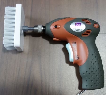 そして、ブラシに電動ドライバのビットと互換のアダプタを取り付けました。