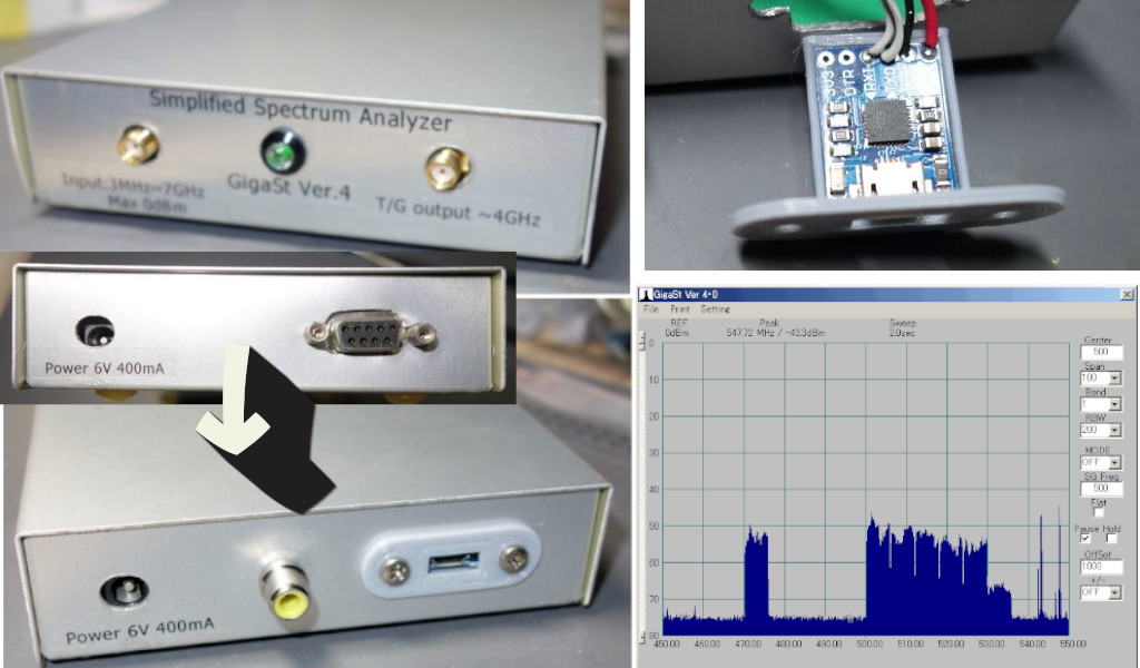 (初回のスペアナアダプタ GigaSt を USB 化する話と「RS-232」が使用している端子の規格などは下のリンクで解説しています。)