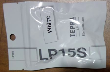 本体に付属するテープは、「T15*30-201」という型番からも分かるように、幅 15 mm、長さ 30 mm の白いラベルが 210個のタイプです。