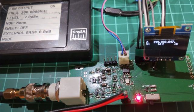 またプリスケーラをつなぐと最高周波数960MHz(TinySA -7dB入力)、最低周波数は240MHzでした。