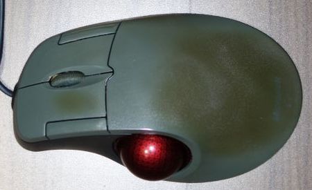 狭い机の上ではマウスを動かす場所の確保が難しいので、何か解決策がないかな・・・とジャンク箱をあさっていたら、昔に使っていたマイクロソフトのトラックボール(Microsoft Trackball Optical 1.0)を発掘しました。
